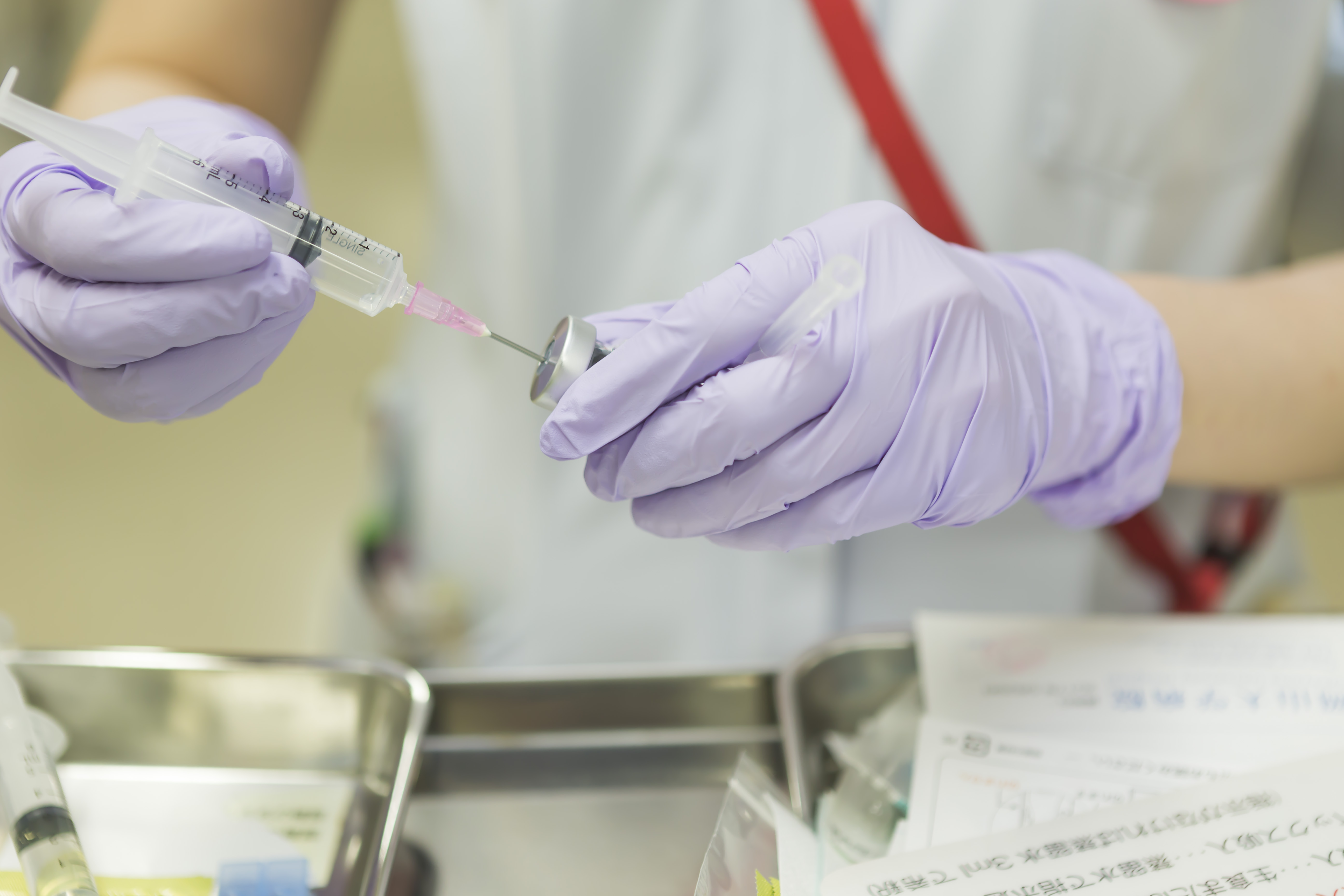 上の写真 薬剤を溶かしているところ